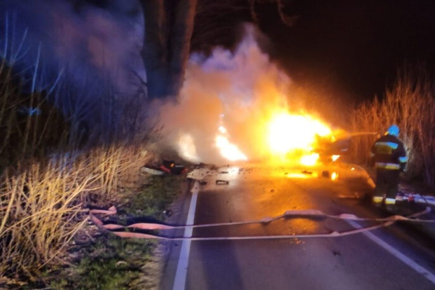 Samochód spłonął po uderzeniu w drzewo na trasie Werblinia-Zdrada