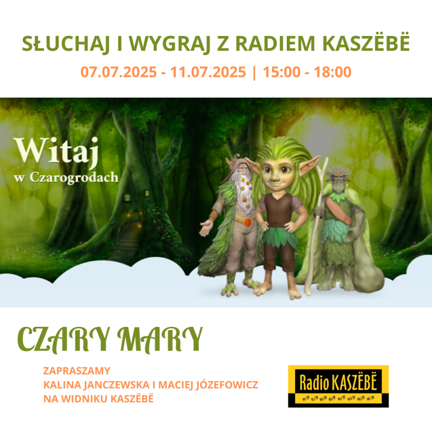 Wygraj zaproszenia do Parku Czarogrody w Celbowie - ul.Kwiatowa 7. Słuchaj programu „Na Widniku Kaszëbë” i weź udział w konkursie. Za pośrednictwem Facebook Messenger wyślij na radiowego messengera zgłoszenie do konkursu.