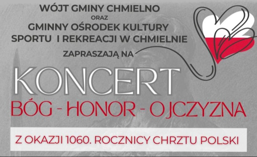 Świętuj 1060. rocznicę Chrztu Polski w Chmielnie! Zapraszamy na uroczysty koncert 19 kwietnia 2026 r. o godz. 16:00 w Domu Kultury. Wstęp wolny – zobacz szczegóły.